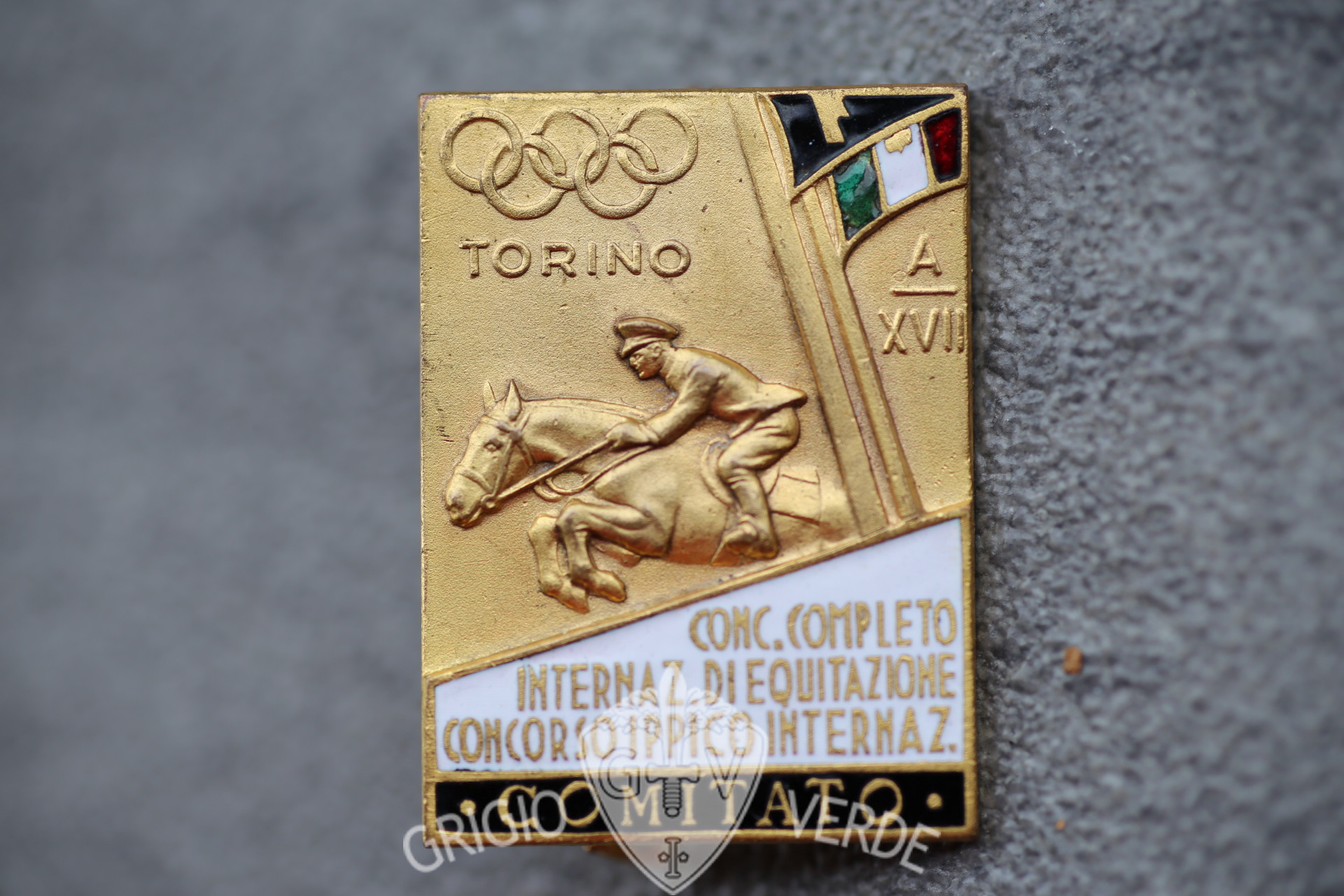 Distintivo 1939 Comitato concorso ippico internazionale Torino classe oro . Marcato al retro E.Lombardi