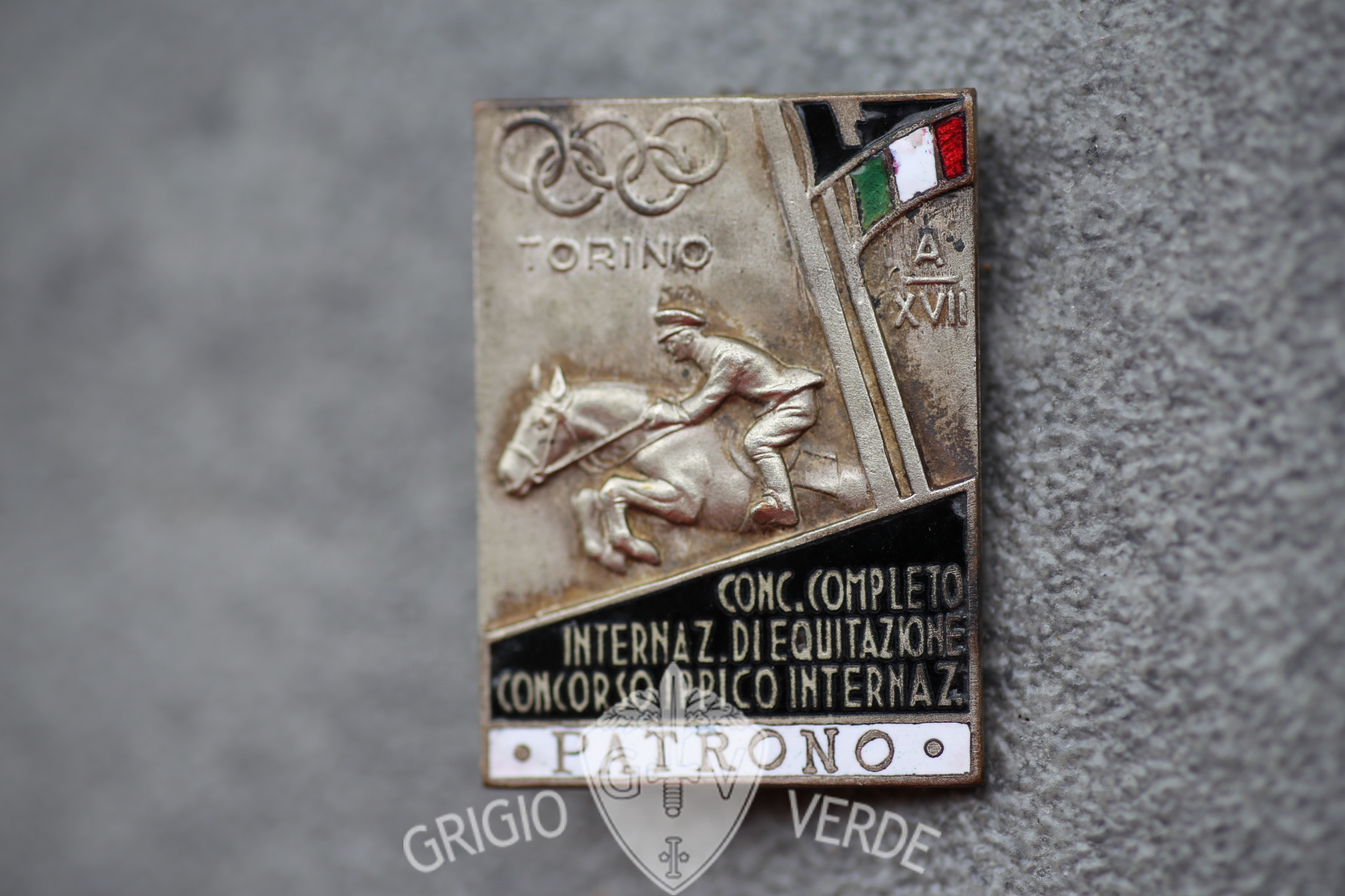 Distintivo 1939 Patrono concorso ippico internazionale Torino classe argento . Marcato al retro E.Lombardi