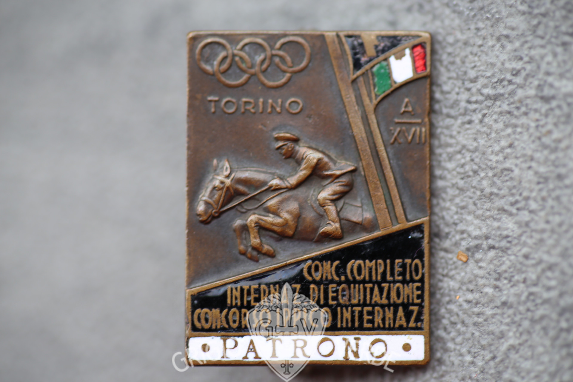Distintivo 1939 Patrono concorso ippico internazionale Torino classe bronzo . Marcato al retro E.Lombardi