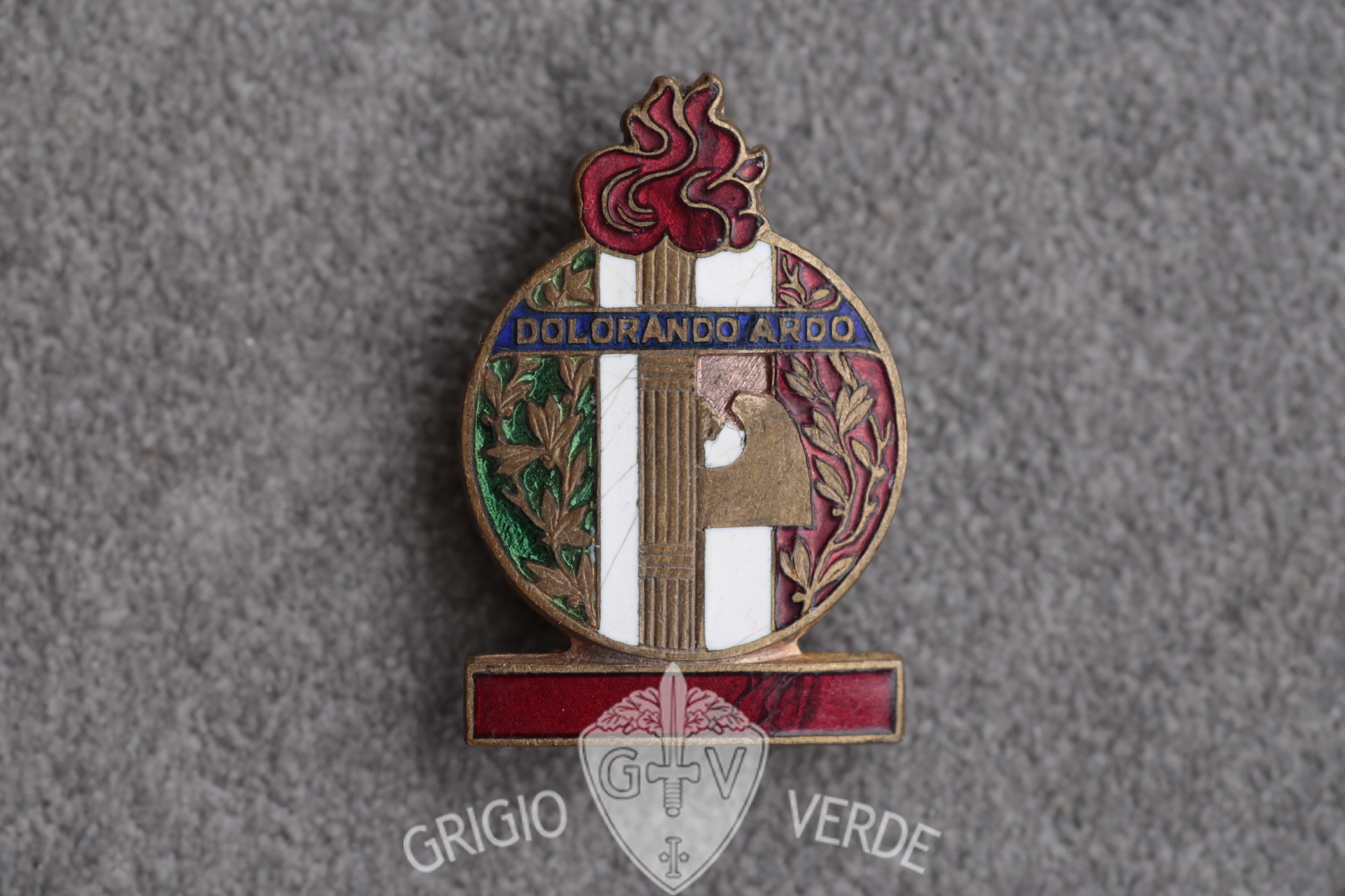 nel 1935 venne realizzato un distintivo da petto , voluto dall’associazione fascista famiglie dei caduti , che venne regolamentato anche sull’album delle divise della milizia per i mutilati della causa nazionale , formato da un disco tricolore smaltato , con al centro il fascio littorio laureato e ardente . Il segno d’onore era completato dalla scritta “dolorando ardo” in un cartiglio azzurro . La creazione del distintivo da petto probabilmente si deve ad un tentativo , anche nella forma , per elevare i mutilati fascisti al pari dei mutilati di guerra ( per i quali era già stato regolamentato un distintivo d’onore da petto ) .Con l’istituzione di un nuovo segno d’onore nulla variava circa il precedente distintivo composto dal galloncino rosso alla manica destra , che continuava ad essere portato sulle uniformi di tutte FFAA. Nel caso di più ferite ( o mutilazioni) in periodi diversi , l’interessato indossava altrettanti distintivi . Si corse ai ripari sempre nel 1935 , con la creazione di un unico distintivo che aggiungeva altrettante barrette quante le concessioni . Nel 1940 , con specifiche circolari disposizioni , il distintivo da petto da ferito ( e quello da mutilato) per azioni fasciste “dolorando ardo” venne esteso anche sul petto delle uniformi delle FFAA ( esercito , marina , aeronautica)