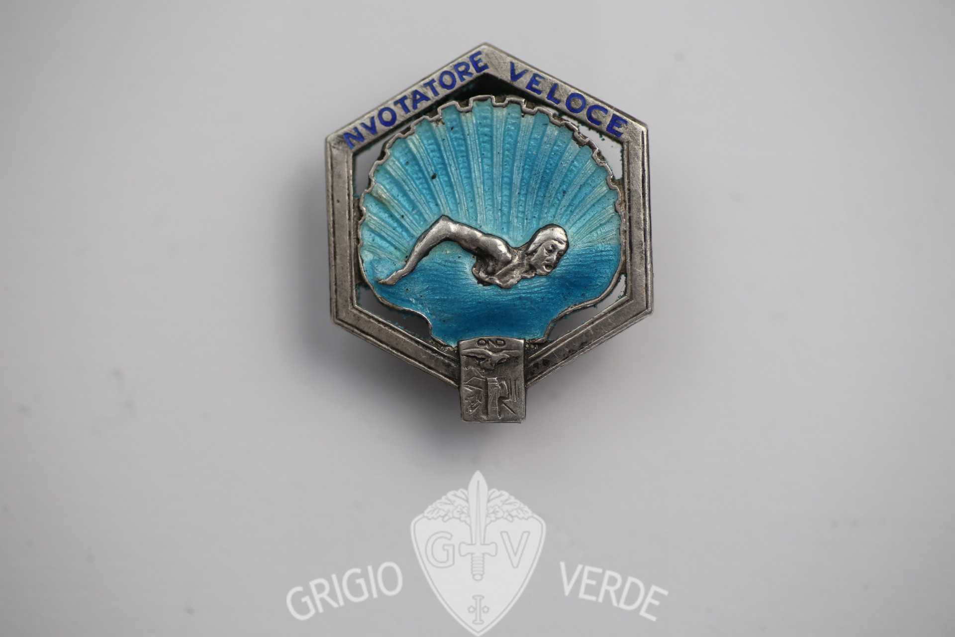 bellissima iconografia per questo distintivo da “NUotatore veloce” dell’O.N.D.