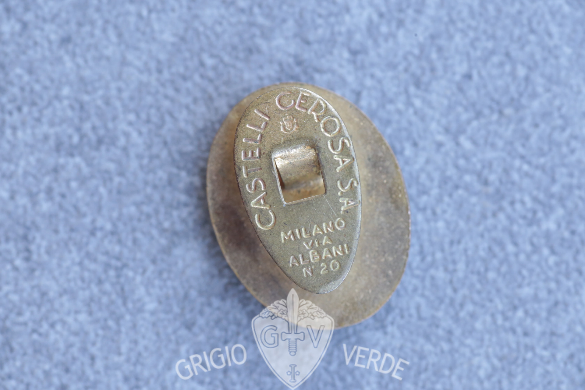 Raro distintivo da asola di forma ovale dimensioni 23 x 18 mm in metallo dorato e smalti policromi, prodotto dalla ditta Castelli e Gerosa di Milano. Fin dal principio, il Fascismo ebbe sempre particolari attenzioni per i suoi caduti, soprattutto per quelli nel cosiddetto periodo antemarcia (1919-1922). A loro durante il ventennio, furono dedicati cerimonie, commemorazioni, enti ed un apposito istituto: A.F.F.C.M.I.F.R. (Associazione fascista famiglie caduti, mutilati, invalidi e feriti per la rivoluzione). Questa associazione aveva fra i suoi compiti quelli di tener vivo ed alto il ricordo dei caduti fascisti e del sacrificio dei mutilati e feriti per la causa nazionale, assistere moralmente e materialmente le famiglie dei caduti Buone condizioni, salvo difetti allo smalto rosso il quale porta inevitabilmente i segni del tempo.