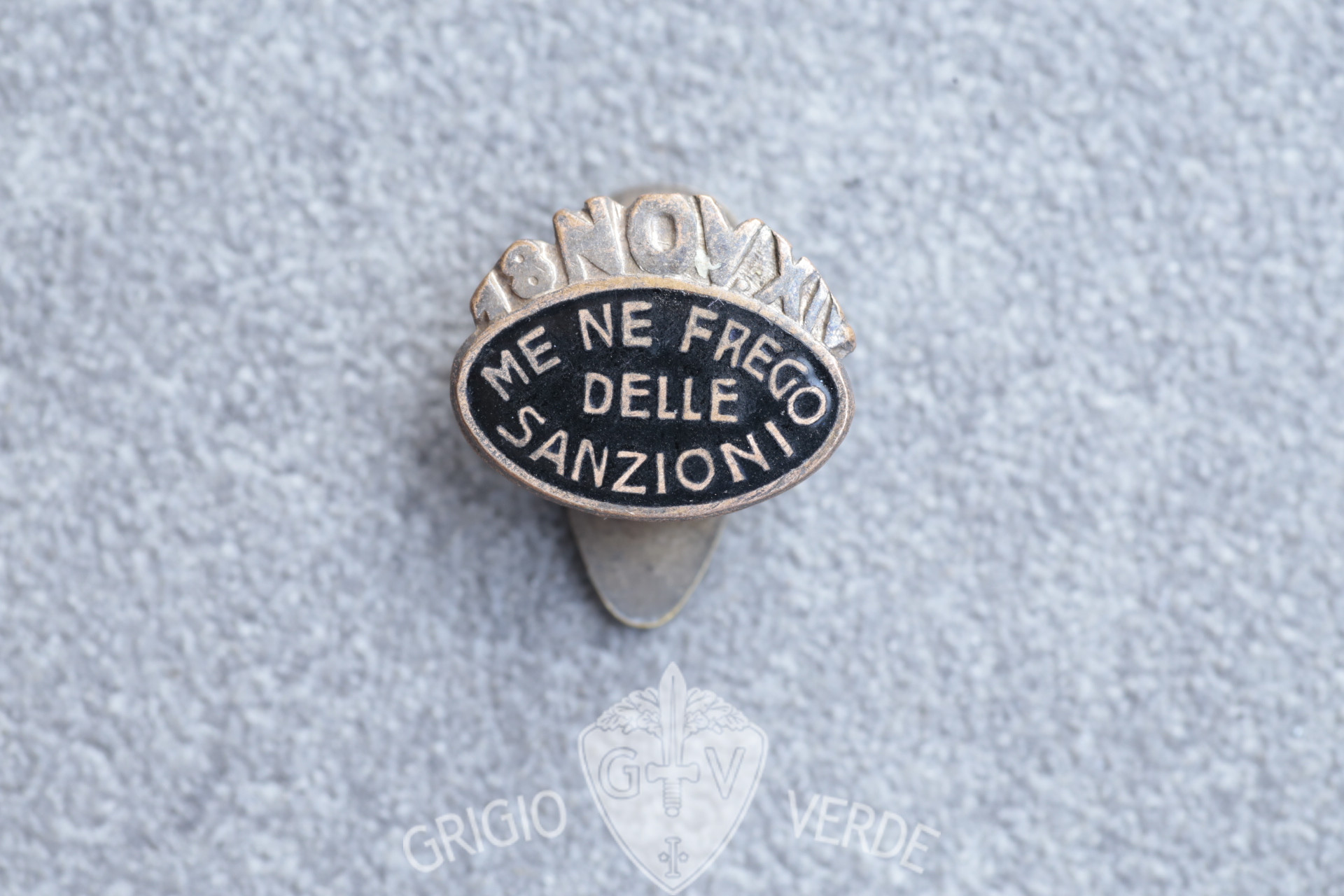 Distintivo Me ne frego delle sanzioni , modello con smalti neri , non comune