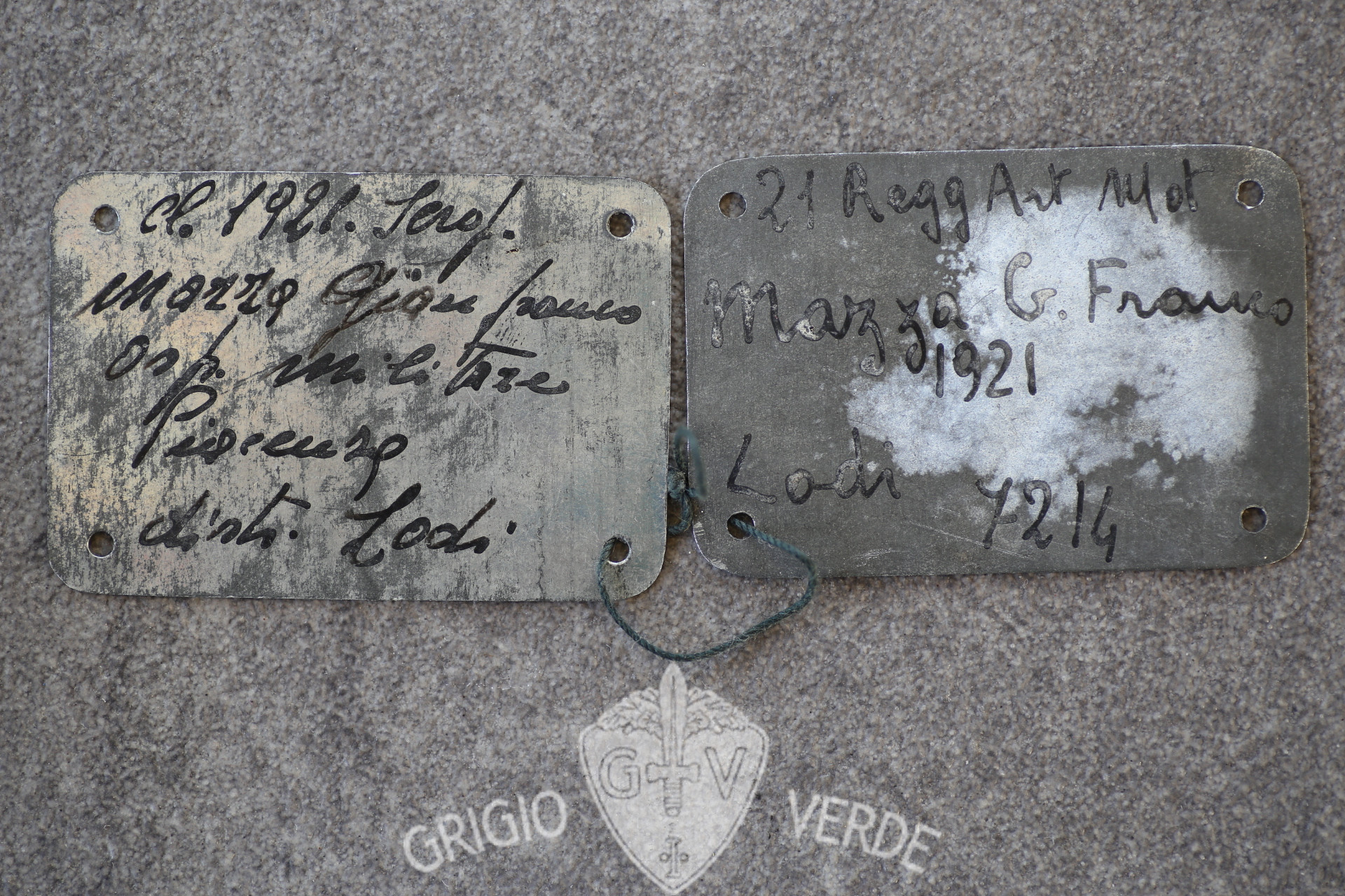 coppia di piastrini appartenuti ad un soldato inquadrato nel 21° reggimento di artiglieria motorizzato della divisione Trieste , impegnata duramente e completamente distrutta nei combattimenti di el alamein. un cimelio davvero introvabile!