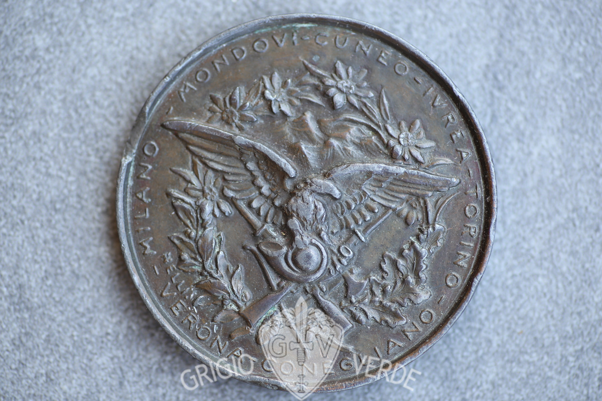 Medaglione in piombo di grosso modulo , non portativo dei reggimenti alpini .