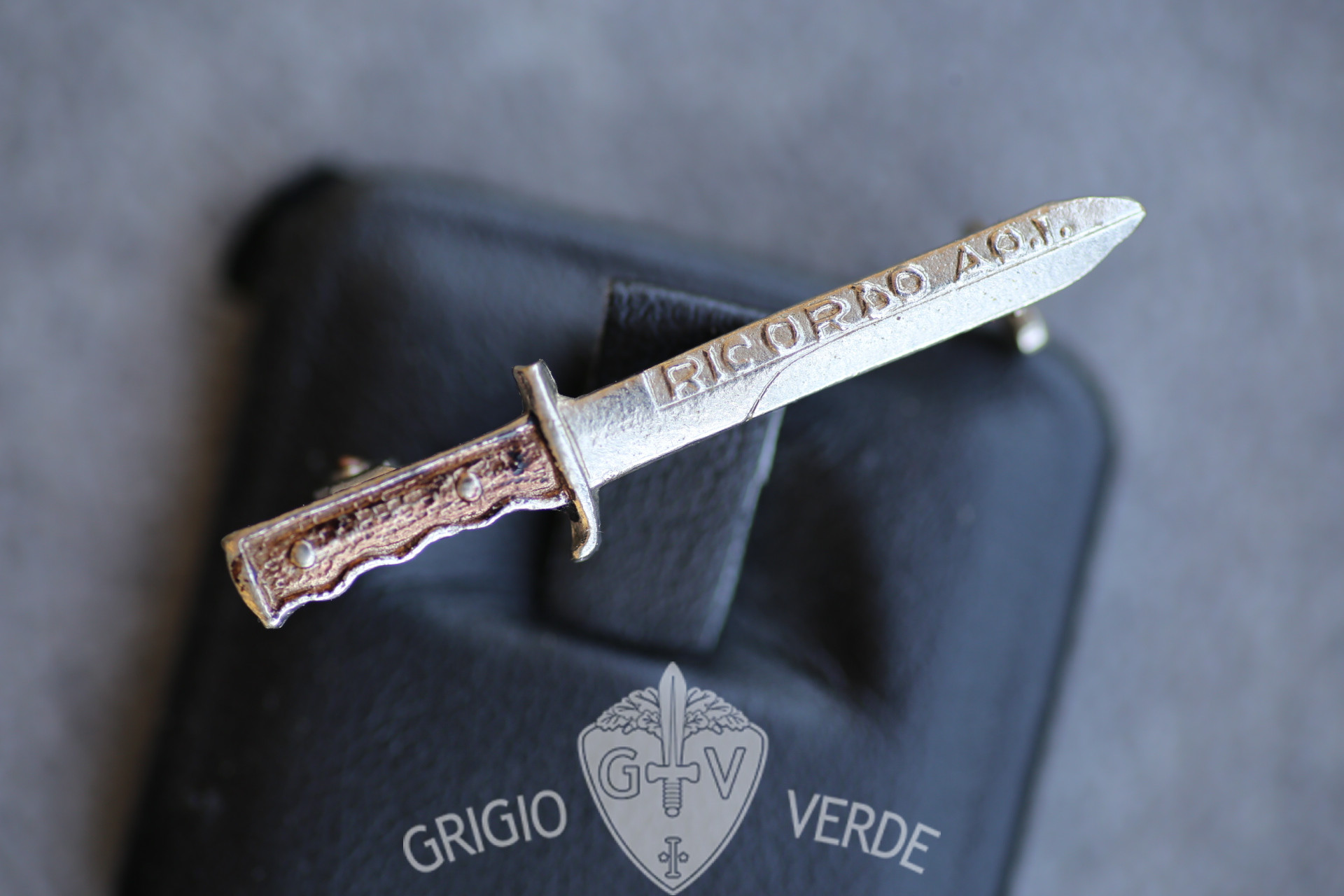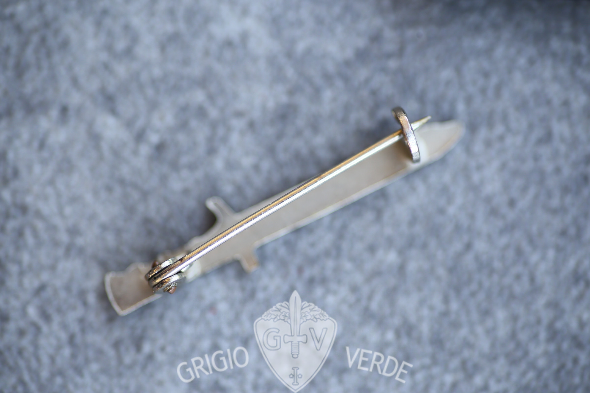 il pdistintivo ricalca fedelmente le fattezze del “pugnale da marcia” delle Camicie Nere fasciste