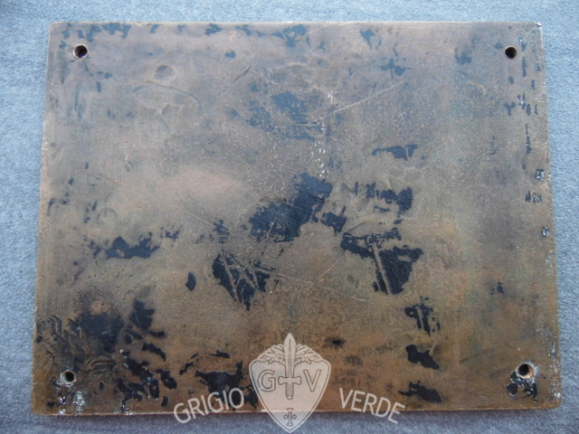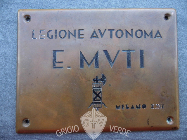 Splendido cimelio della Repubblica Sociale Italiana. La targa della Legione autonoma Ettore Muti di Milano , una delle formazioni delle Brigate Nere più attive e temute della storia. 4 Fori agli angoli permettevano il fissaggio di questa targa ad un muro o ad una porta.