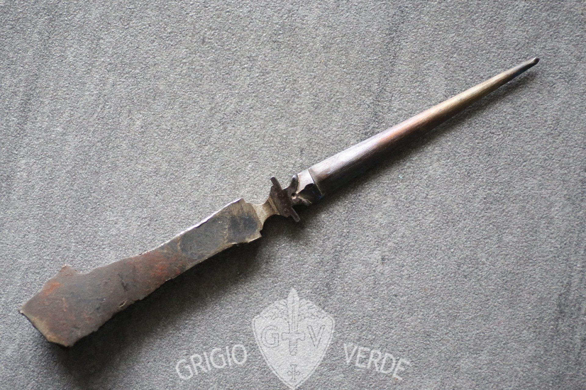 tagliacarte trench art artigianato da trincea 1, ricavato da una scheggia di ferro di un proiettile d’artiglieria.