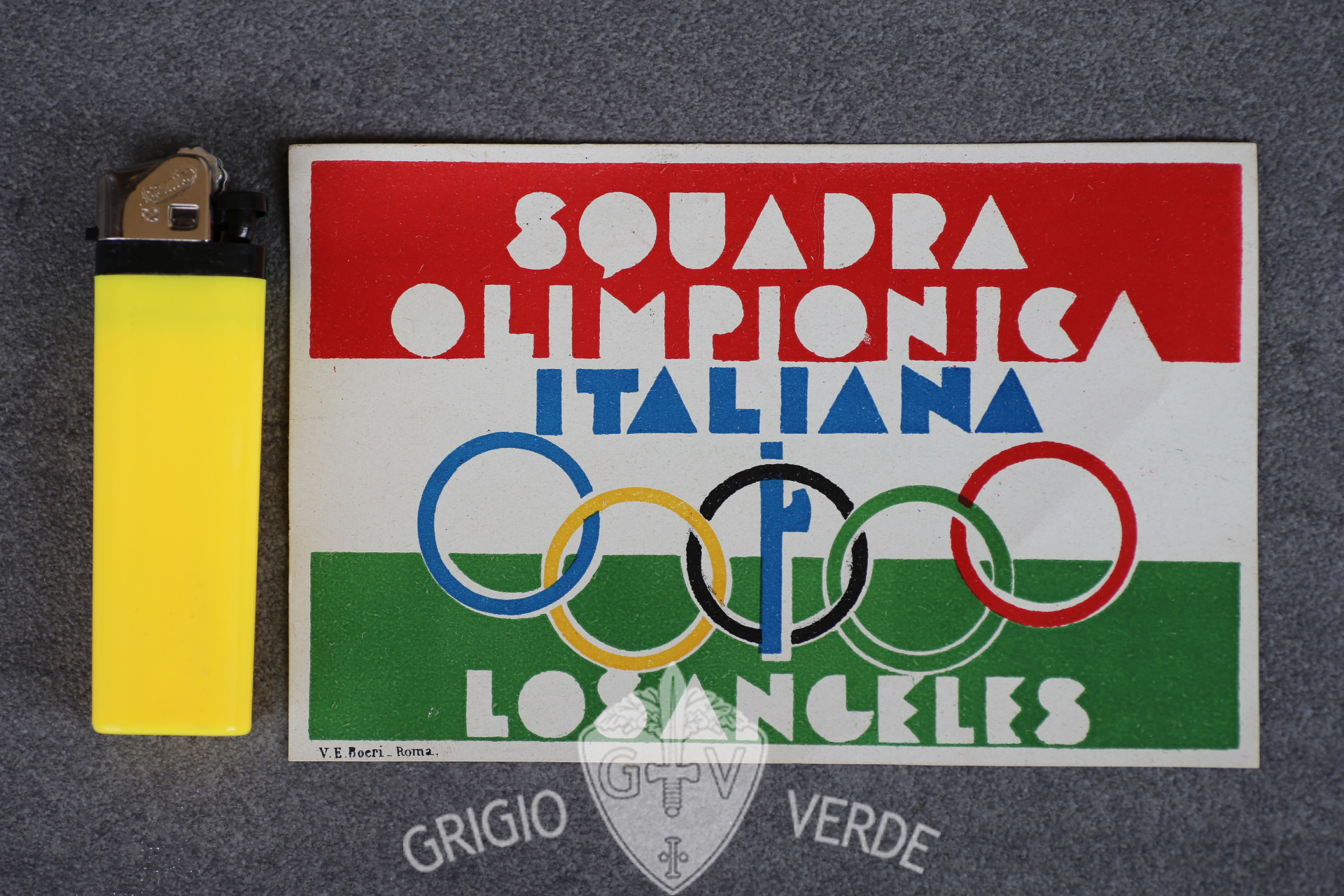 rara etichetta per i bagli degli atleti italiani partecipanti alla decima olimpiade di Los Angeles ,